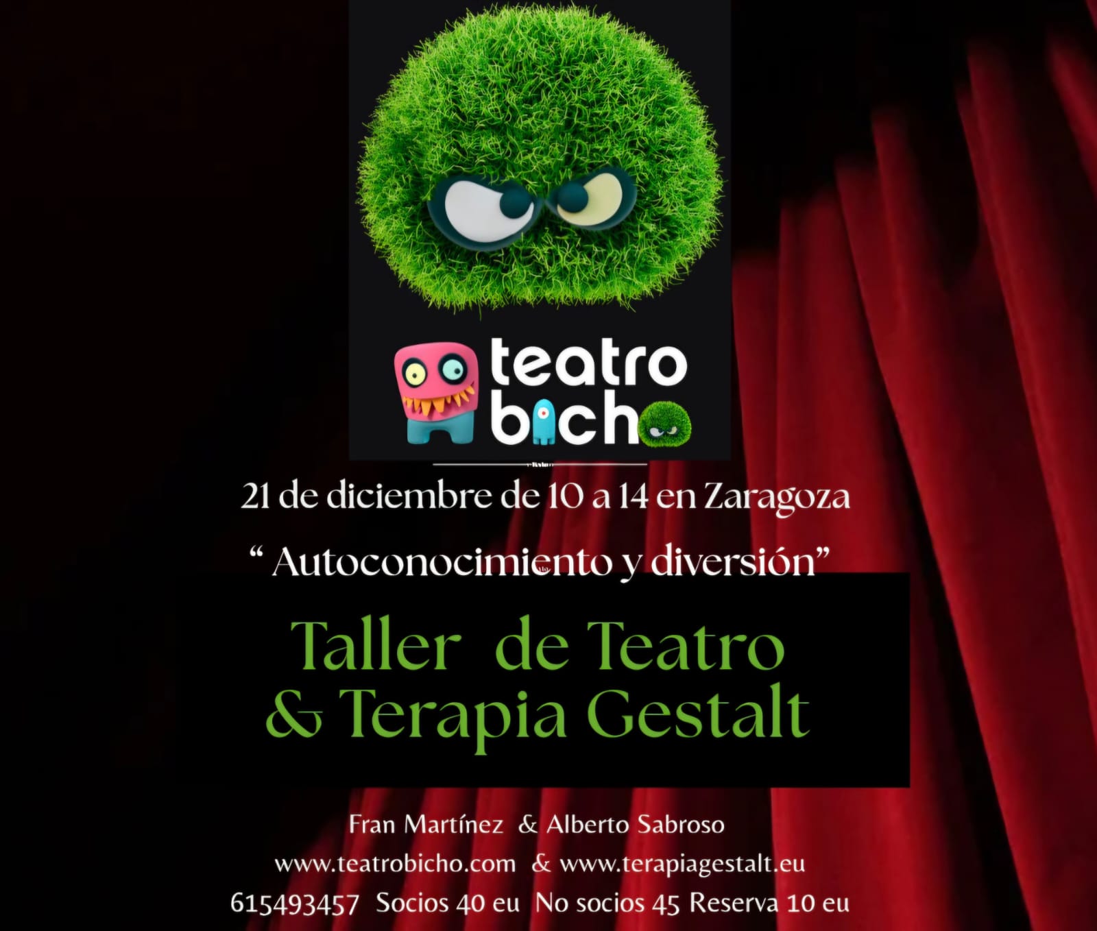 Puedes obtener más info en teatrobicho@gmail.com o en el 615493457